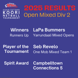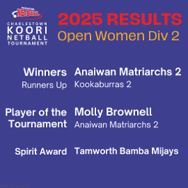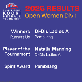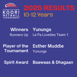 2025 CHARLESTOWN KOORINETBALL TOURNAMENT - RESULTS